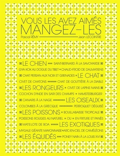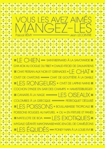 Comme tout un chacun, vous possédez sûrement un chien, un chat, un oiseau, un poisson rouge ou, qui sait, un serpent ou un caméléon. Comme tout bon maître, vous chérissez votre petit Rex, Moumoune ou Kiki. Rien n'est trop beau pour lui : nourriture variée et de qualité, panier confortable, litière, collier gravé à son nom, aquarium chauffé, nonosse et baballe pour faire joujou, etc. Malheureusement tout cela a un prix et, les temps sont durs... Alors, quand arrive la fin du mois et que l'argent vient à manquer, il vous est sûrement déjà arrivé, en contemplant votre frigo désert, d'envier votre fidèle compagnon qui, lui par contre, ne manque de rien. Vous vous prenez alors à jalouser sa gamelle bien remplie et ses formes rondelettes... Une fois que vous serez débarrassés de quelques idées préconçues, testez ces recettes bonnes et économiques qui feront la joie des petits comme des grands. Vous allez vous en lécher les babines !