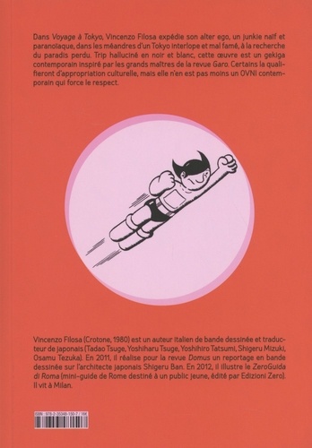 Dans Voyage à Tokyo, Vincenzo Filosa expédie son alter ego, un junkie naïf et paranoïaque, dans les méandres d'un Tokyo interlope et mal famé, à la recherche du paradis perdu. Trip halluciné en noir et blanc, cette oeuvre est un gekiga contemporain inspiré par les grands maîtres de la revue Garo. Certains la qualifieront d'appropriation culturelle, mais elle rien est pas moins un OVNI contemporain qui force le respect.