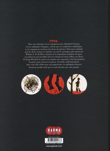 1916. Dans une Amérique encore ségrégationniste, Elizabeth Freeman est une suffragette énergique, connue pour ses conférences médiatiques et son engagement en faveur des droits des femmes. Tout aussi combatif, pour les droits civiques et l'égalité, son mi le sociologue afro-américain William E. B. Du Bois s'inquiète de la disparition troublante de Jesse, adolescent qui travaillait dans les champs de cotan à Waco, au Trans. Il charge Elizabeth de mener une engage sous couverture, l'une des premières du genre, pour retrouver le garçon. Accueillie chaleureusement dans cette ville célèbre pour son progressisme, la suffragette découvre bientôt la terrible vérité qui se cache derrière une carte postale.