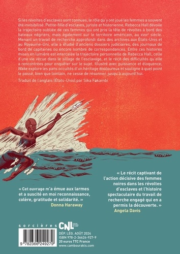 Si les révoltes d'esclaves sont connues, le rôle qu'y ont joué les femmes a souvent été invisibilisé. Petite-fille d'esclaves, juriste et historienne, Rebecca Hall dévoile la trajectoire oubliée de ces femmes qui ont pris la tête de révoltes à bord des bateaux négriers, mais également sur le territoire américain, au xviiie siècle. Menant un travail de recherche approfondi dans des archives aux Etats-Unis et au Royaume-Uni, elle a étudié d'anciens dossiers judiciaires, des journaux de bord de capitaines ou encore nombre de correspondances. Entre ces histoires mises en lumière est intercalée la trajectoire personnelle de Rebecca Hall, celle d'une vie vécue dans le sillage de l'esclavage, et le récit des difficultés qu'elle a rencontrées pour enquêter sur le sujet. Illustré avec puissance et éloquence, Wake explore les pans occultés d'un héritage douloureux et souligne à quel point le passé, bien que lointain, ne cesse de résonner, jusqu'à aujourd'hui.