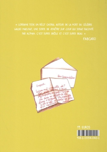 "Lorraine tisse un récit choral autour de la mort du célèbre Waldo Maelfait, une sorte de fenêtre sur cour qui serait raconté par Altman. C'est super drôle et c'est super beau." Fabcaro