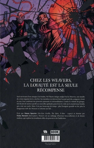 Seul survivant d'une attaque à la bombe, Sid Thyme intègre malgré lui les Weavers, une famille du crime organisé de la côte Est. Ses membres ne doivent leur loyauté qu'à des araignées vivant en eux, leur conférant des pouvoirs puissants et extraordinaires. Contre la volonté du groupe, Sid décide de mettre à profit ses nouvelles aptitudes pour lever le voile sur la mystérieuse bombe qui a tué son oncle. Mais il na pas beaucoup de temps : plus l'araignée grandit en lui, plus la dangereuse toile des Weavers se referme sur Sid...
