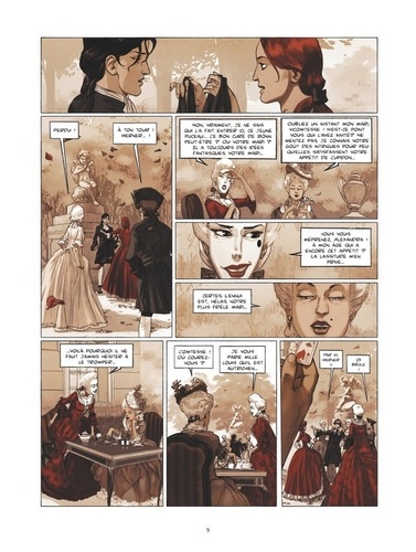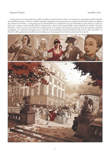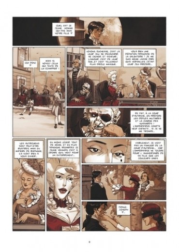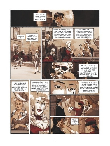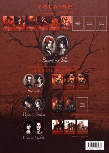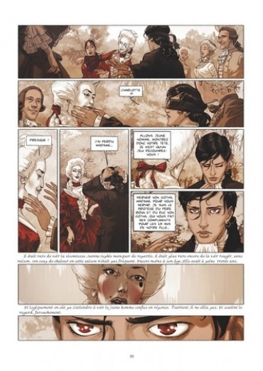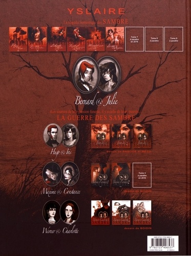 La collection La Guerre des Sambre est une collection de romans d'amour, dont la série principale, Sambre, conte l'histoire de Bernard et Julie. Chaque histoire se décline en un cycle de trois albums qui sera écrit par Yslaire et dessiné par un dessinateur différent. Chaque cycle peut se lire séparément, comme une oeuvre exceptionnelle, ou comme un chapitre d'une folie amoureuse qui traverse les générations... Après l'histoire des enfants de Bernard et Julie, Bernard-Marie et Judith, le second cycle était consacré à leurs parents, Hugo & Iris. La collection se poursuit aujourd'hui avec l'histoire de leurs arrière-grands-parents, Charlotte & Werner. La série La Guerre des Sambre Cycle 2 -Werner & Charlotte / Tome 1 : Automne 1768 Quelle est l'origine de la tragédie des Sambre ? En remontant l'arbre généalogique de la famille maudite, le deuxième cycle intitulé Werner & Charlotte va explorer les circonstances troubles qui ont précédé la naissance du père de Hugo, Maxime-Augustin. Le deuxième cycle jette un éclairage nouveau sur les origines de la folie qui touche Hugo et tous ses descendants. Il est composé de trois albums dessinés par Marc-Antoine Boidin. L'action commence à Vienne en 1768, peu avant le mariage de Marie-Antoinette avec le futur Louis XVI. C'est là que se sont exilées Jeanne-Sophie de Sambre et sa fille Charlotte. Dans l'atmosphère sulfureuse des salons de la cour impériale, elles font la connaissance d'un farouche orphelin aux yeux rouges, nommé Werner von Gotha. Malgré toutes les manoeuvres de sa mère, qui souhaite pour elle meilleur parti, Charlotte en tombe amoureuse. Inéluctablement. Werner & Charlotte - Premier degré d'ascendance [1768-1769] "Malheur à celui qui aimera une fille aux yeux de braise car celui-là pleurera sa vie durant des larmes de sang" . Hugo Sambre l'a écrit. Son livre, La Guerre des Yeux, décrit depuis l'aube de l'humanité la funeste attirance de ses ancêtres aux yeux noirs pour des femmes aux yeux rouges. A chaque génération, leur passion mène un Sambre à la folie et à la mort. Les circonstances qui ont entouré la naissance du père de Hugo éclairent sa vie et le mystère de cette fatalité dont tous les Sambre ont hérité.