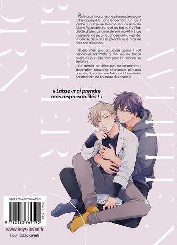 Rui Narushima, un jeune pharmacien, poursuit les conquêtes sans lendemains. Un soir, il tombe sur un jeune homme soûl du nom de Takumi Takanashi, échoué au bar où il a l'habitude d'aller. La raison de son mal-être ? Les moqueries de ses amis concernant sa virginité. Ni une, ni deux, Rui le prend sous le bras en direction d'un hôtel. Quelle n'est pas sa surprise quand il voit débarquer Takanashi à son lieu de travail quelques jours plus tard pour lui déclarer sa flamme ! Ce dernier ne lésine pas sur les moyens : observation constante et avances plus que poussées, les actions de Takanashi finiront-elles par atteindre ce bourreau des coeurs ?