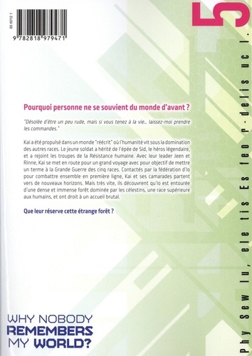 Pourquoi personne ne se souvient du monde d'avant ? La Grande Guerre pour la suprématie du monde qui opposa les cinq races se solda par la victoire de l'humanité menée par le héros Sid. Mais soudain, le monde est réécrit sous les yeux du jeune Kai qui se retrouve projeté dans un monde dans lequel les humains ont perdu la Grande Guerre des cinq races. Dans ce monde, personne ne se souvient de Kai. C'est alors que le jeune homme hérite de la puissance du héros Sid et décide de tout faire pour remettre en place le vrai monde . Avec Rinne, une jeune elfe, et Jeen, commandant de la Résistance humaine, Kai se met en route pour un grand voyage avec pour objectif de mettre un terme à la Grande Guerre des cinq races. Contactés par la fédération d'Io pour combattre ensemble en première ligne, Kai et ses camarades partent vers de nouveaux horizons. Mais très vite, ils découvrent qu'Io est entourée d'une dense et immense forêt dominée par les célestins, une race supérieure aux humains, et ont droit à un accueil brutal. Que va-t-il donc les attendre dans cette étrange forêt ?