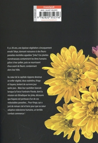 Il y a 36 ans, une épaisse végétation a brusquement envahi Tokyo, donnant naissance à des fleurs-parasites mortelles appelées "jinka" Ces plantes monstrueuses contaminent les êtres humains grâce à leur pollen, puisse nourrissent d'eux avant de fleurir, condamnant alors leur hôte. Au coeur de la capitale nippone devenue un enfer végétal, deux orphelins, Kingo et Kayano, tentent de survivre jour après jour... Mais leur quotidien bascule lorsque la Force Funéraire Florale, dont la mission est d'éradiquer les jinka, découvre que Kayano est porteuse d'un de ces redoutables parasites... Pour Kingo, qui a juré de remuer ciel et terre pour que sa soeur adoptive redevienne humaine, un terrible combat commence !