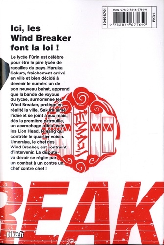 Le lycée Fûrin est célèbre pour être le pire lycée de racailles du pays. Haruka Sakura, fraîchement arrivé en ville et bien décidé à devenir le numéro un de son nouveau bahut, apprend que la bande de voyous du lycée, surnommée les Wind Breaker, protège en réalité la ville. Sakura aime l'idée et se joint à eux mais, dès la première patrouille, un accrochage a lieu avec les Lion Head, le gang qui contrôle le quartier voisin. Umemiya, le chef des Wind Breaker, est contraint d'intervenir. La dispute va devoir se régler par un combat à un contre un, chef contre chef !