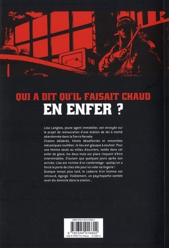 Lisa Langlois, jeune agent immobilier, est envoyée sur le projet de restauration d'une station de ski à moitié abandonnée dans la Sierra Nevada. Chalets délabrés, hôtels désaffectés et remontées mécaniques rouillées : le lieu est glauque à souhait. Pour une femme seule au milieu d'ouvriers, isolée dans cet enfer de glace, les deux mois sur place risquent d'être interminables. D'autant que quelques jours après son arrivée, Lisa est victime d'un cambriolage : quelqu'un a forcé la porte de chez elle pour lui voler sa lingerie ! Quelque temps plus tard, le cadavre d'un homme est retrouvé, égorgé. Visiblement, un psychopathe semble avoir élu domicile dans la station...
