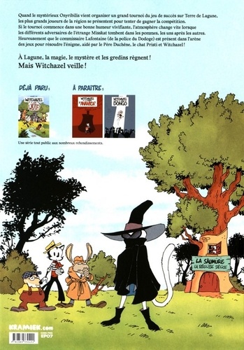 Quand le mystérieux Onyribilis vient organiser un grand tournoi du jeu de succès sur Terre de Lagune, les plus grands joueurs de la région se présentent pour tenter de gagner la compétition. Si le tournoi commence dans une bonne humeur vivifiante, l'atmosphère change vite lorsque les différents adversaires de l'étrange Misskat tombent dans les pommes, les uns après les autres. Heureusement que le commissaire Lafontaine (de la police du Dodoge) est présent dans l'arène des jeux pour résoudre l'énigme, aidé par le Père Duchêne, le chat Pristi et Witchazel ! A Lagune, la magie, le mystère et les gredins règnent ! Mais Witchazel veille !