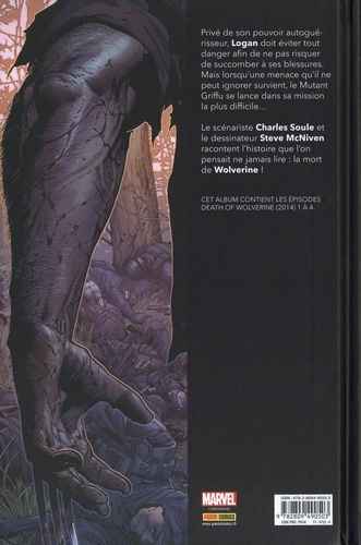 Privé de son facteur autoguérisseur, Logan est devenu une cible. Conscient que le temps lui est désormais compté, Wolverine réussira-t-il à donner un sens à sa mort ? Cet album fait partie des must-have, des récits essentiels et accessibles destinésà tous les amateurs de super-héros. Identifiés clairement par un logo sur la couverture, les lecteurs repéreront immédiatement ces incontournables pour se constituer leur bibliothèque Marvel idéale. CharlesSoule (Le retour de Wolverine) et SteveMcNiven (Nemesis) livrent un récit tout en retenue pour l'une des plus belles morts de l'histoire des comics.