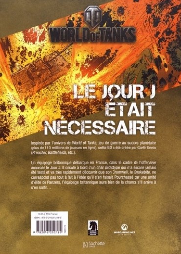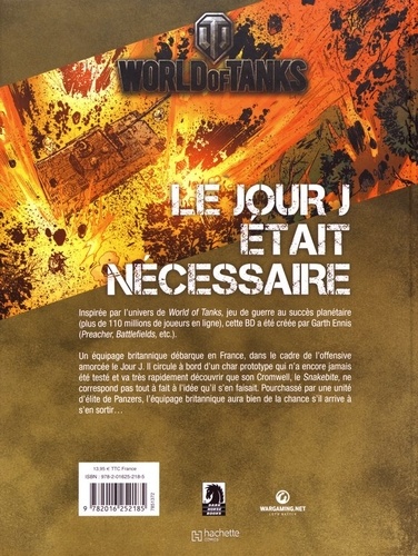 Inspirée par l'univers de World of Tanks, jeu de guerre au succès planétaire (plus de 110 millions de joueurs en ligne), cette BD a été créée par Garth Ennis (Preacher. Battlefields, etc.). Un équipage britannique débarque en France, dans le cadre de l'offensive amorcée le Jour J. Il circule à bord d'un char prototype qui n'a encore jamais été testé et va très rapidement découvrir que son Cromwell, le Snakebite, ne correspond pas tout à fait à l'idée qu'il s'en faisait. Pourchassé par une unité d'élite de Panzers, l'équipage britannique aura bien de la chance s'il arrive à s'en sortir...