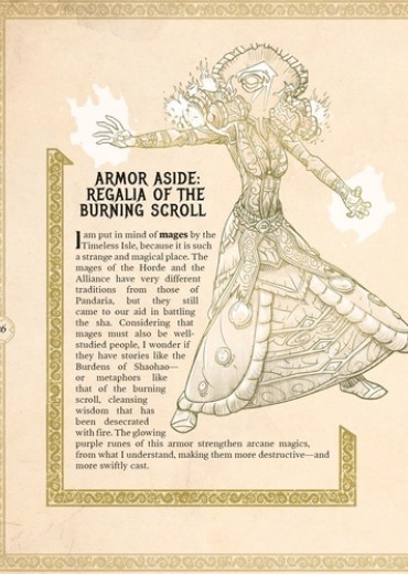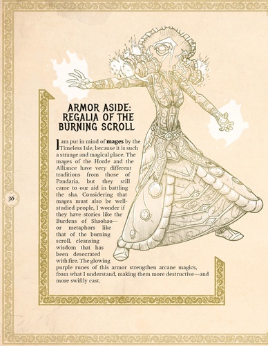 L'aventure continue dans la verdoyante Pandarie. Pour cette quatrième escale, rejoignez le Chien sauvage Li Li Brune d'Orage, son oncle Chen Brune d'Orage, et sa vieille amie Catelyn la Lame dans leurs pérégrinations en ces terres, dans une quête d'aventures et de rencontres, pour comprendre enfin ce que signifie quitter son pays - et y revenir. De la luxuriante forêt de Jade à la touffeur de l'île Vagabonde, partez à la découverte de nouvelles traditions et de l'art extraordinaire que l'on produit en Pandarie, de ses peuples, ainsi que de la puissante armure et des artéfacts retrouvés en ces contrées. A la découverte d'Azeroth : Pandarie sera votre prochaine étape dans cette époustouflante marche au coeur d'Azeroth. Après les périples dans les Royaumes de l'Est, Kalimdor et Norfendre, A la découverte d'Azeroth : Pandarie est la nouvelle étape de votre inoubliable voyage à travers Azeroth. Constitué de dessins inédits, de rapports souvent annotés de manière humoristique et de lettres, ce guide offre de superbes illustrations sous forme de croquis de villes, de personnages et d'armes.