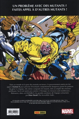 Dans un monde où la peur des mutants est tenace, le gouvernement américain fait appel à Facteur-X pour prévenir d'éventuels comportements dangereux parmi les porteurs du gène X. L'équipe, elle-même composée de mutants, doit accomplir des missions périlleuses. Sur le sol américain comme à l'étranger, les menaces sont nombreuses... Retrouvez, dans cet Omnibus, les grandes aventures de l'équipe scénarisées par Peter David (The Incredible Hulk).