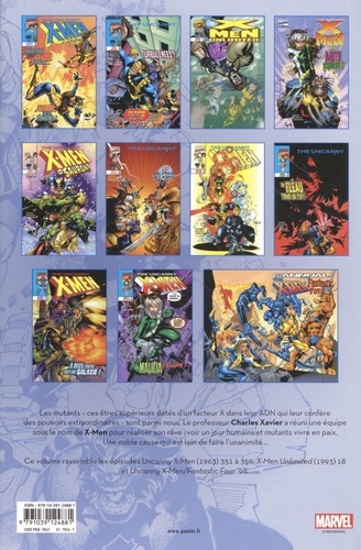 Les mutants - ces êtres supérieurs dotés d'un facteur X dans leur ADN qui leur confère des pouvoirs extraordinaires - sont parmi nous. Le professeur Charles Xavier a réuni une équipe sous le nom de X-Men pour réaliser son rêve voir un jour humains et mutants vivre en paix. Une noble cause qui est loin de faire l'unanimité... Ce volume rassemble les épisodes Uncanny X-Men (1963) 351 à 359. X-Men Unlimited (1993) 18 et Uncanny X-Men/Fantastic Four '98.