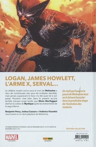 Logan. James Howlett. L'Arme X. Le mutant qu'on appelle Wolverine a eu bien des vies, a pris de nombreuses identités, et voilà que son avenir se mêle avec son passé ! Afin d'empêcher la mort d'un personnage-clé de l'histoire mutante, Logan va entreprendre un voyage dans le temps qui l'emmènera en divers moments de son existence ! Cette saga en deux tomes reprend le principe du tandem de mini-séries qui a inauguré la période mutante actuelle, House of X et Powers of X. Mêlant passé et futur, la trame va et vient entre plusieurs moments de l'histoire de Logan et révèle son lot de surprises. Certaines aventures célèbres du populaire mutant seront ainsi revisitées.
