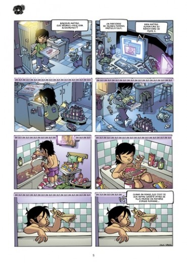 Ils sont parmi nous, armée d´anonymes... les geeks ! Mères de famille, lycéens ou trentenaires surbookés, ils sont nombreux à retrouver leurs manettes dès qu’ils le peuvent et à ne les quitter que sous l’épuisement ou la contrainte… Certains n’ont de vie sociale qu’avec leurs amis virtuels et n’ont en guise de soleil que l’éclairage de leur écran ! Et comme en IRL (In Real Life, la vraie vie quoi !), les problèmes ne se résolvent pas d’un coup de masse d’armes, le geek a bien besoin du soutien de sa guilde, véritable petite famille virtuelle… Avec World of no life, c'est une vie par-delà la vie qui se révèle à vous. Mais aussi un humour décalé servi par un trait tout en rondeur, qui ravira les accros aux jeux en réseau autant qu'il donnera les clés de cet étrange univers aux néophytes. Geeks rulz !