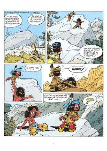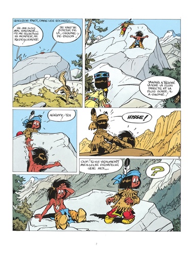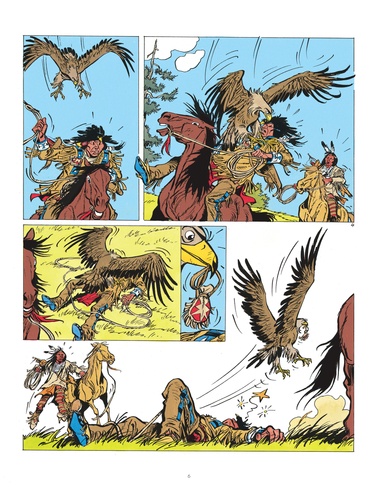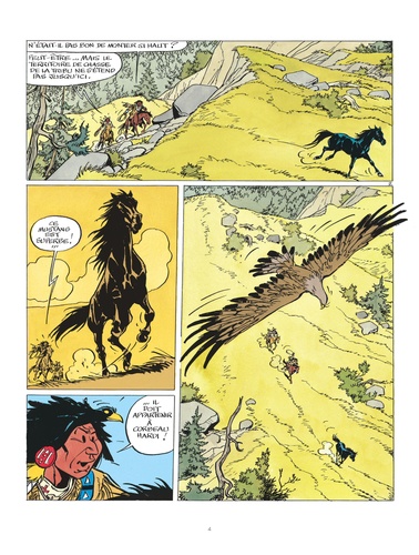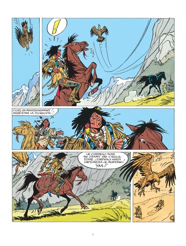 Décidé à capturer un superbe mustang noir, Corbeau Hardi viole le territoire de chasse d'un aigle qui l'attaque. Le chasseur téméraire se fait enlever son talisman par le rapace et se trouve plongé dans une mystérieuse léthargie. Si Yakari comprend l'erreur du chasseur, il trouve le châtiment trop dur et entre en scène. Il va braver mille périls, tout en rencontrant d'étonnants animaux : le wapiti, les marmottes, les mouflons et, surtout, les chèvres des montagnes, de fameuses varappeuses qui l'adopteront et le conduiront à l'aire de l'aigle ravisseur...