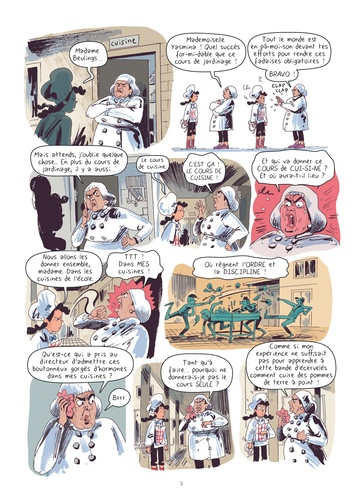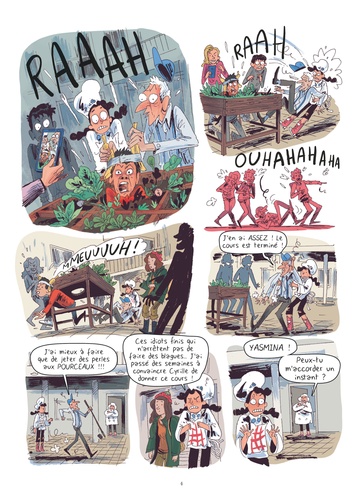 Grâce aux signatures recueillies par sa pétition, Yasmina, nouvelle star des réseaux sociaux, se voit attribuer une heure de cuisine et une heure de jardinage à l'école. Super nouvelle... sauf que ses élèves envoient des blagues sur Instagram plutôt que d'écouter ses leçons ! Quant à Rita, la responsable de la cuisine scolaire, elle préfère les plats congelés... Et ce n'est pas le seul problème de taille qui occupe Yasmina. Elle trouve généralement des légumes frais dans le potager de ses amis, Marco et Cyrile. Mais voilà : des lapins dévorent les légumes du jardin ! Et au vu du risque de surpopulation, ils sont menacés par des voisins qui se mettent à les chasser... Bref, rien ne va plus, Yasmina doit acheter ses légumes au supermarché - horreur ! – et les lapins, en manque de nourriture, risquent de finir leur existence dans une marmite... La vie n'est pas facile pour les adeptes d'une alimentation équilibrée ! Une série débordante d'enthousiasme et de bonne humeur, qui allie humour et préoccupations environnementales... tout en se demandant comment nourrir les quelques milliards d'humains supplémentaires qui débarqueront bientôt sur la planète ! Les plats de Yasmina vous font saliver ? Retrouvez 8 pages de recettes en fin d'album.