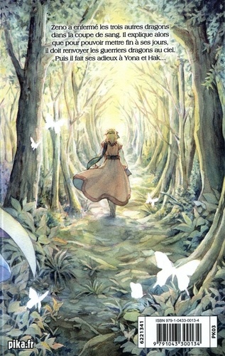 Zeno a enfermé les trois autres dragons dans la coupe de sang. Il explique alors que pour pouvoir mettre fin à ses Jours, il doit renvoyer les guerriers dragons au ciel. Puis il fait ses adieux à Yona et Hak...