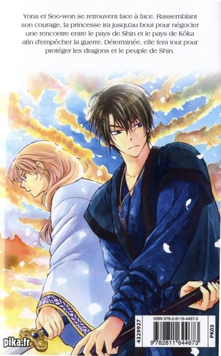 Yona et Soo-won se retrouvent face à face. Rassemblant son courage, la princesse ira jusqu'au bout pour négocier une rencontre entre le pays de Shin et le pays de Kôka afin d'empêcher la guerre. Déterminée, elle fera tout pour protéger les dragons et le peuple de Shin.