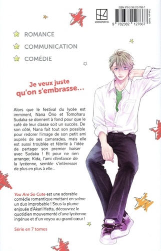 Alors que le festival du lycée est imminent, Nana Ono et Tomoharu Sudaka se donnent à fond pour que le café de leur classe soit un succès. De son côté, Nana fait tout son possible pour redorer l'image de son petit ami auprès de ses camarades, mais elle est aussi troublée et fébrile à l'idée de partager son premier baiser avec Sudaka ! Et pour ne rien arranger, Kida, l'ami d'enfance de la lycéenne, semble s'intéresser de plus en plus à elle... You Are So Cute est une adorable comédie romantique mettant en scène un duo improbable ! Sous la plume enjouée d'Akari Natta, découvrez le quotidien mouvementé d'une lycéenne ingénue et d'un voyou au grand coeur !