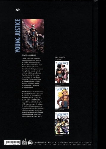 Conner Kent est piégé à Skartaris, demeure du célèbre Warlord. L'équipe de jeunes super-héros n'a ainsi d'autre choix que de porté d sa recherche. Mois pour le sauver, Young Justice aura besoin de renforts, et Sideways, Spoiler Aqualand ainsi qu'Arrowette ne seront pas de trop. Quant a Impulse, il est propulsé dans un voyage initiatique à travers le temps et l'espace, voyage ou cours duquel il découvrira de sombres vérités... YOUNG JUSTICE ou le renouveau de l'équipe de Jeunes super-héros de l'Univers DC. Brian Michael BENDIS (Ultimate Spider-Man, CLARK KENT : SUPERMAN) rassemble les sidekicks des plus célèbres personnages de la Ligue de Justice et les associe avec de nouveaux venus pour des aventures colorées et animées servies par le trait dynamique de John TIMMS (HARLEY QUINN) et de Scott GODLEWSKI (THE LOST BOYS).