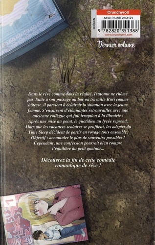 Dans le rêve comme dans la réalité, Tsutomu ne chôme pas. Suite à son passage au bar où travaille Ruri comme hôtesse, il parvient à éclaircir la situation avec la jeune femme. S'ensuivent d'étonnantes retrouvailles avec une ancienne collègue qui fait irruption à la librairie ! Après une mise au point, le quotidien au lycée reprend. Alors que les vacances scolaires se profilent, les adeptes du Time Sleep décident de partir en voyage tous ensemble. Objectif : accumuler le plus de souvenirs possibles ! Cependant, une confession pourrait bien rompre l'équilibre du petit quatuor... Découvrez la fin de cette comédie romantique de rêve !