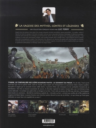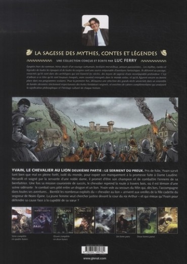 Amour et quête de rédemption En très mauvaise posture, Yvain est recueilli et soigné par la servante d'une noble dame. En signe de reconnaissance, le chevalier promet de combattre l'ennemi de sa bienfaitrice. Une fois sa mission couronnée de succès, Yvain reprend la route à travers bois, pour être témoin d'une scène incroyable : le combat sans pitié entre un dragon et un lion. Yvain vole au secours du brave lion qui dès lors l'accompagne dans toutes ses aventures... Les exploits d'Yvain, le " chevalier au lion ", arrivent bientôt aux oreilles de la fille cadette du seigneur de Noire Epine. Cette jeune fille cherche justice devant la cour du roi Arthur - et qui mieux qu'Yvain pour défendre sa noble cause face à la cupidité de sa soeur ? Epopée médiévale en trois tomes, cette nouvelle série chevaleresque, tirée du roman de Chrétien de Troyes, mêle amour courtois et aventures initiatiques.