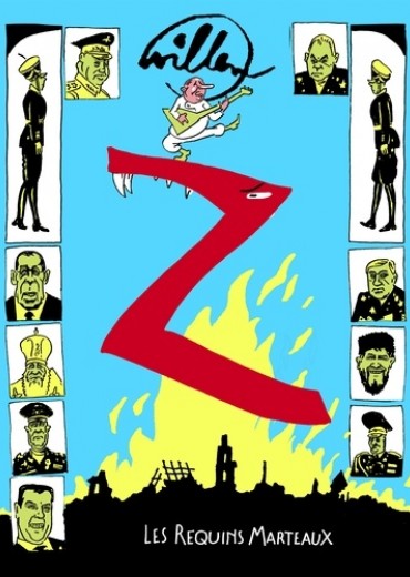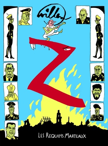 Quel est ce mystérieux " Z " auquel Willem fait référence ? Il y a environ un an, nous l'avions vu apparaître, énigmatique, sur les belliqueux véhicules russes qui attaquaient l'Ukraine. Signe emblématique de l'injuste offensive de Moscou contre Kiev, il donne le ton : un an de guerre en Ukraine, ça ne se célèbre pas, ça se corrode avec une vodka frelatée, sous la plume du désormais retraité Willem. Parce qu'après le virus, les russes : mégalomanie et folie de Poutine, oligarques et militaires entre nostalgie de l'URSS et crasse stupidité... sous forme de bandes dessinées aux atours symboliques de personnages de fiction (" Oleg & Oksana "), c'est du pur Willem enragé et engagé sur la guerre en Ukraine, entre inédits et prépublications dans Charlie Hebdo depuis un an, qui nous feront grincer les zygomatiques !