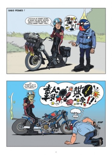 Motardes, motards, le nouveau Sato est enfin prêt, et il est fait pour vous : 48 pages de dessins 100 % bitume pour tous les amoureux de twin, de deux roues et d'essorage de poignée ! Un bon moyen de se détendre une fois rentré de ballade et de se venger de tous les pandores et autres radars. Indispensable.