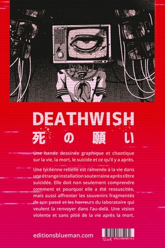 Une bande dessinée graphique et chaotique sur la vie, la mort, le suicide et ce qu'il y a après. Une lycéenne rebelle est ramenée à la vie dans une étrange installation souterraine après s'être suicidée. Elle doit non seulement comprendre comment et pourquoi elle a été ressuscitée, mais aussi affronter les souvenirs fragmentés de son passé et les horreurs du laboratoire qui veulent la renvoyer dans l'au-delà. Une vision violente et sans pitié de la vie après la mort.