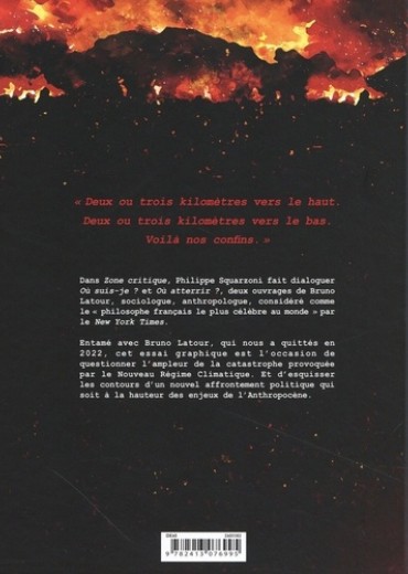 Quelle est l'ampleur de la catastrophe provoquée par le Nouveau Régime Climatique ? Dans Où atterrir ? puis Où suis-je ? , Bruno Latour a dessiné les contours d'un nouveau positionnement politique qui soit à la hauteur de ces enjeux. Initiée avant sa disparition le 9 octobre 2022, cette adaptation graphique, qu'il qualifiait d' "oeuvre sur une oeuvre" , fait dialoguer ces deux textes complémentaires.
