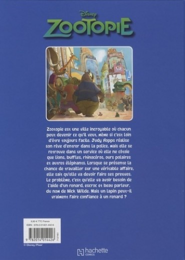 La jeune Judy Hopps est une adorable lapine qui rêve dintégrer la police de Zootopie. Lorsque son rêve se réalise enfin, Judy est ravie, mais pas au bout de ses surprises ! Car, pour résoudre une enquête, elle va devoir faire équipe avec un renard aussi sournois que rusé…