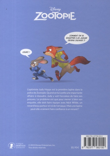 Retrouvez l'histoire du film Disney Zootopie dans une magnifique bande dessinée ! Ce livre de 56 pages comprend une présentation des personnages, des citations du film et l'histoire complète au format BD. A lire dès 7 ans. L'optimiste Judy Hopps est la première lapine dans la police de Zootopie. Quand on lui confie une importante affaire à résoudre, Judy y voit l'occasion de faire ses preuves. Le problème est que pour mener à bien son enquête, elle doit faire équipe avec Nick Wilde, un renard beau parleur et roi de l'arnaque. Mais une lapine peut-elle vraiment faire confiance à un renard ?