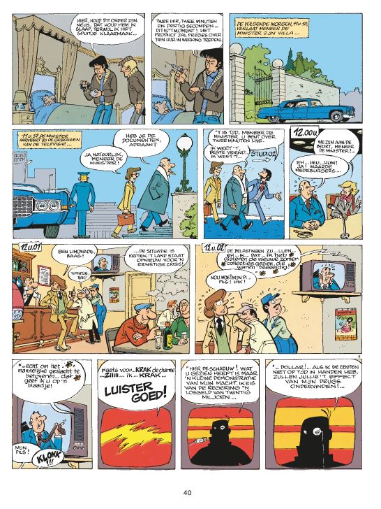 Wat? 421 startte als een komische persiflage op James Bond, maar evolueerde gaandeweg naar een semi-realistische reeks met meer drama en trauma's uit het verleden van geheim agent 421. Zie ook deze archiefpagina. Tekenaar: Eric Maltaite die we ook kennen van volgende stripreeksen één seconde later Stomp Scenarist: Stephen Desberg Publicatie: 421 liep tussen 1980 en 1992 in Robbedoes. Albums: Het eerste verhaal verscheen in 1983 als nummer 5 in de collectie Debuut van Dupuis en werd daarna niet heruitgegeven in de reguliere reeks. Onder de reeksnaam 421 verschenen tussen 1984 en 1992 tien albums. 1980, een nieuwe reeks verscheen in het weekblad Robbedoes. Éric Maltaite, de zoon van Will, was verantwoordelijk voor de tekeningen; Stephen Desberg, die al met zijn vader samenwerkte, was verantwoordelijk voor het scenario. De nieuwe reeks heette 421, met in de hoofdrol een geheim agent, en was een kind van haar tijd. De auteurs lieten zich sterk door de James Bond-saga inspireren. Licht, eigenzinnig en heel Brits, markeert ze de eerste stappen in de stripwereld van twee grote auteurs, die hun grafisch en verhalend talent vandaag al lang hebben bewezen. Deze integrale bevat de eerste drie albums: Het wrak en de miljoenen, Koude oorlog en Groetjes uit de 7de hemel.