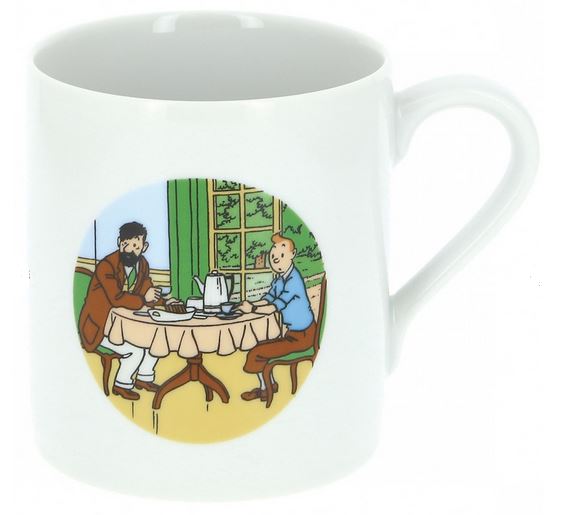 Deze porseleinen mok heeft langs beide zijden een afbeelding. Aan de ene zijde zijn Kuifje en Haddock verrast door het geblaf van Bobbie en aan de andere zijde bezoeken Kuifje en Bobbie de nieuwe kasteelheer van Kasteel Molensloot, kapitein Haddock. Deze mok maakt deel uit van de reeks Kasteel Molensloot. De scènes zijn van de albums De zaak Zonnebloem en De zeven kristallen bollen. Deze porseleinen beker is ideaal voor alle warme dranken. U zult de mok goed in de hand kunnen houden dankzij een breed gevormd handvat. De mok is vaatwasser- en magnetronbestendig. Elke beker is in een mooie kartonnen doos verpakt. Een ideaal geschenk!
