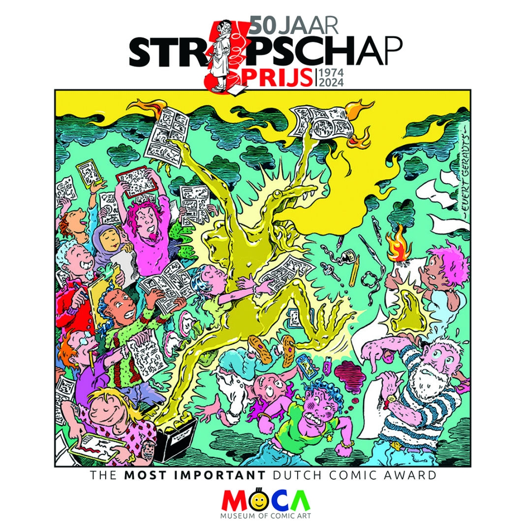 Une catalogue richement illustré a été créé pour la huitième exposition au MoCA, '50 Ans du Prix Stripschap'.