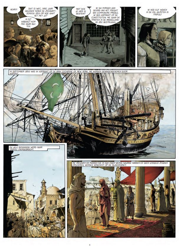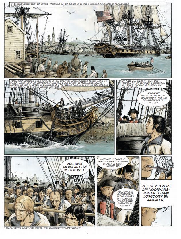 Boston, 1803. Pierre-Mary Corbières, een verlegen jongeman van 16 jaar monstert aan bij de USS Constitution, een oorlogsschip dat koers zet naar de Middellandse Zee om de strijd aan te binden met de Barbarijse staten. Terwijl de bemanning van de lange reis gebruikmaakt om manoeuvres te oefenen, maakt Pierre-Mary kennis met het leven op zee en knoopt hij weer vriendschap aan met oude kennissen, zoals de zwijgzame Nicolas. De twee mannen zijn eerst bootsgezellen, dan wapenbroeders, en beseffen dat ze elk zware familiegeheimen meezeulen… Duikt hun verleden weer op in de woeling van de oorlog die hun wacht? Na De piraten van Barataria komt Franck Bonnet nu met een nieuwe avonturenreeks die zich afspeelt op zee. Deze wervelende reeks, met een romaneske toets, is gebaseerd op waargebeurde feiten en gaat heel nauwkeurig om met de geschiedenis, met veel aandacht voor technische details (zeemanstaal, getrouwe weergave van de schepen en het materieel, enz.).