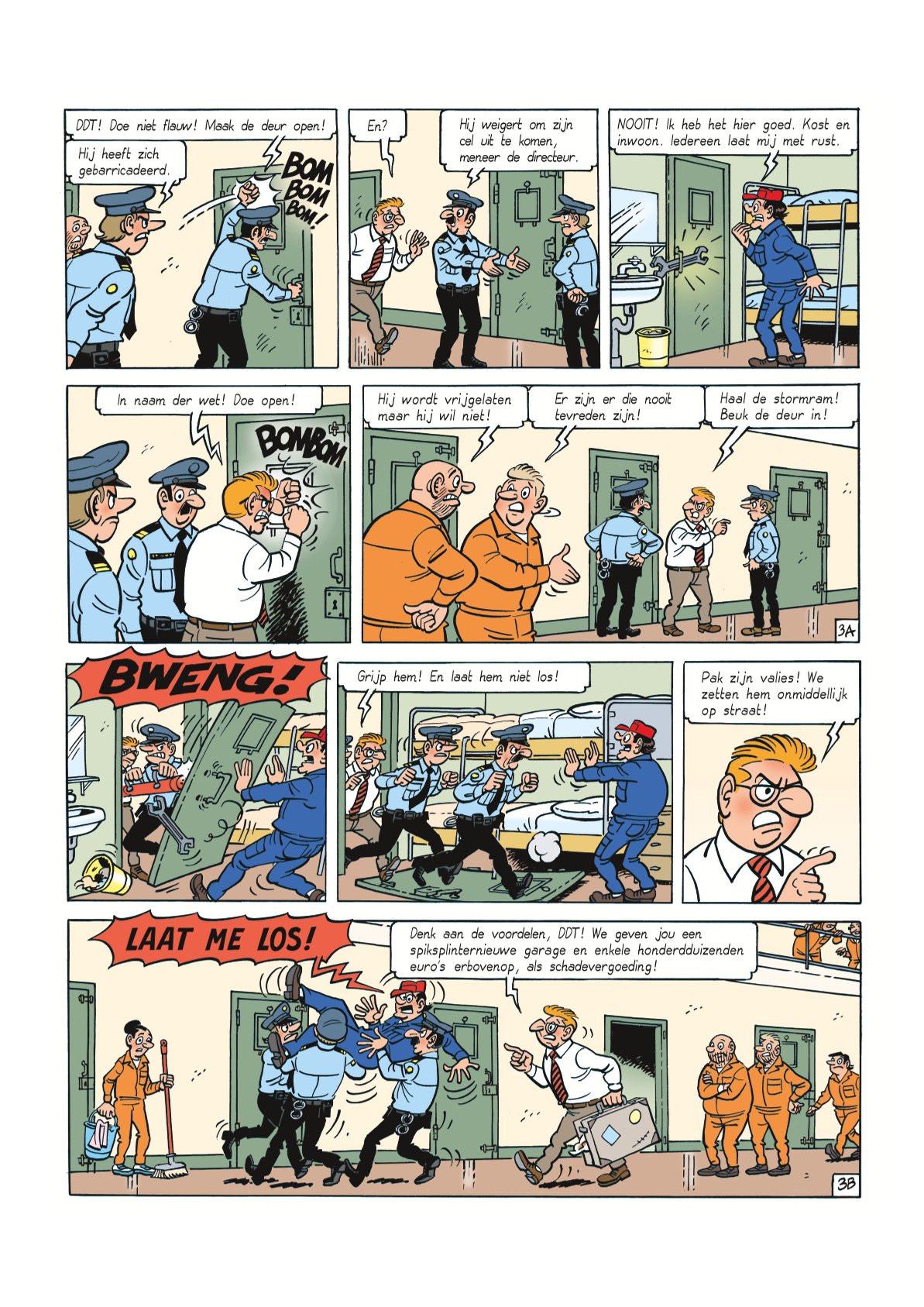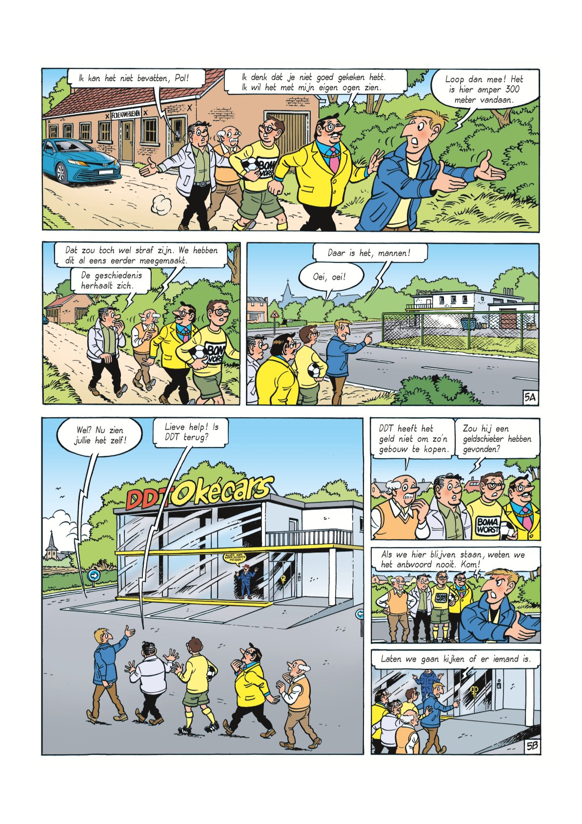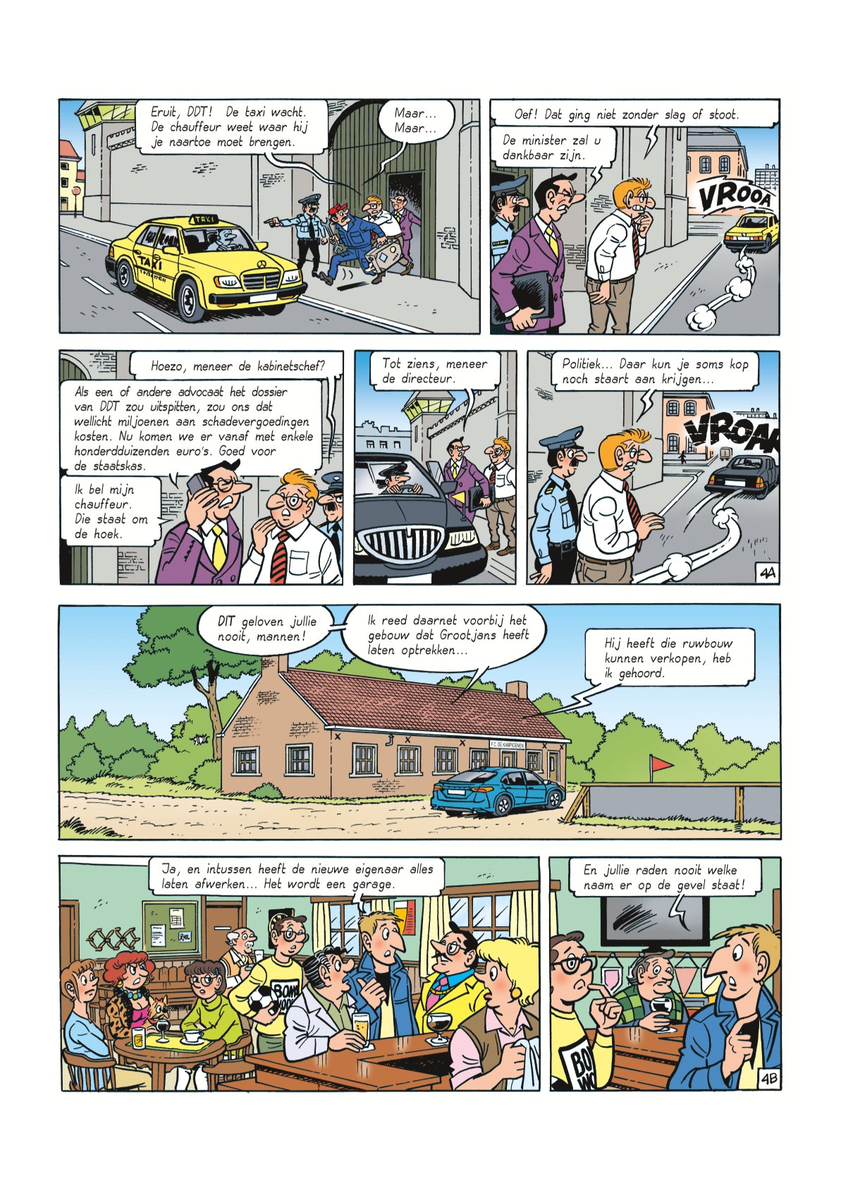 De minister van Justitie heeft het dossier van DDT opnieuw bekeken. Hij komt tot de vaststelling dat er heel wat procedurefouten zijn gemaakt. Op grond daarvan wordt DDT vrijgelaten. Bij wijze van schadevergoeding geeft men hem een nieuwe garage. De kabinetschef van de minister, de heer Cabinetard, zal DDT begeleiden bij zijn re-integratie in de maatschappij. De verbazing van de Kampioenen is groot wanneer ze vaststellen dat de nieuwe garage van DDT vlak bij hun veld ligt. Maar de auto's die hij verkoopt, van een onbekend Zuid-Amerikaans merk, vallen in de smaak. Xavier en Carmen kopen er een. 's Nachts wordt er ingebroken in hun nieuwe auto. De zetels worden stukgemaakt. Wat is er aan de hand?