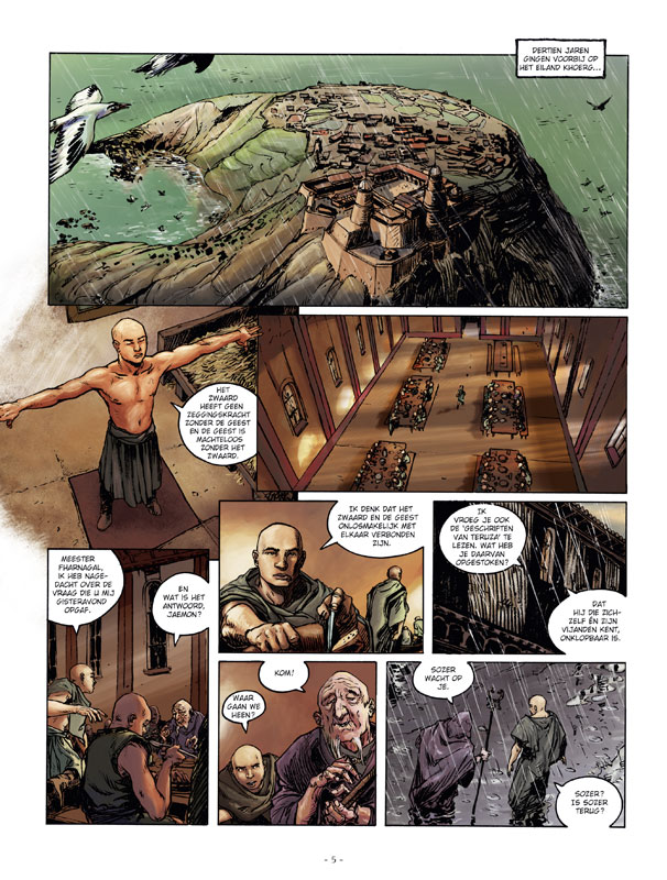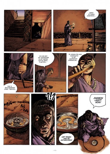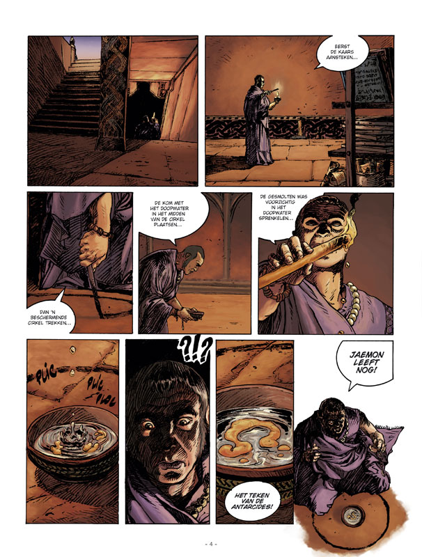 In hun zoektocht naar sequijnen zijn onze drie avonturiers ver gegaan. Héél ver. Want wie is er nu wreed? Degene die z'n bezittingen verdedigd, of degene die moord om te Twaalfduizend jaar vóór onze tijdrekening lag er op Antarctica geen ijs. Er ontwikkelde zich een beschaving die koninkrijken voortbracht met namen als Antarcië, Valusië en Leng… Twaalfduizend jaar vóór onze tijdrekening leefde Jaemon, bastaardzoon van een koning. Hij droeg het merkteken van de dynastie der Antarciden. Ter dood veroordeeld door de Eerste Dame Kaarla, wordt hij naar het eiland Khourg gebracht om zijn geest en zijn lichaam te versterken ...
