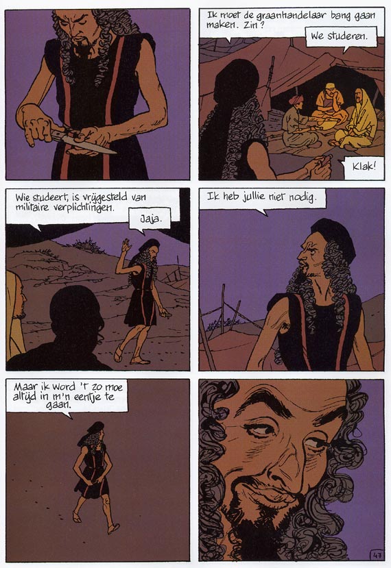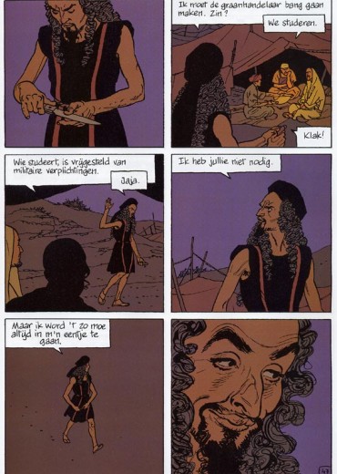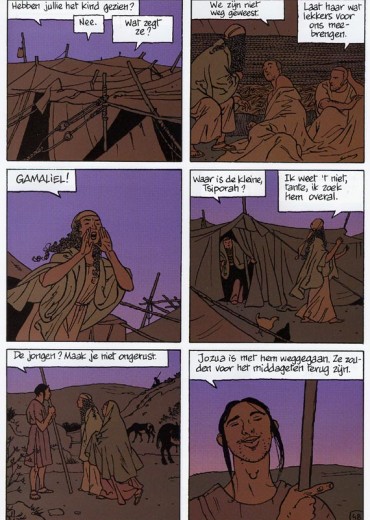 '- Pardon, ik wou je niet laten schrikken. Ik ben Adam Harishon. Ik ben de eerste mens. Ik ben stokoud.' Gamaliel, Cotus en Camulos zijn opgevangen in een kamp van joodse soldaten die oorlog voeren met de Romeinen. Gamaliel staat onder de hoede van Jozua, de meest fanatieke zeloot van de groep. Deze sleept hem mee in een strafexpeditie die slecht afloopt. Gamaliel blijft alleen achter in de woestijn. Terwijl Tsiporah, Elia, Cotus en Camulos hem gaan zoeken, ontmoet hij Adam Harishon, de eerste mens, die hem gastvrij ontvangt in zijn grot ...