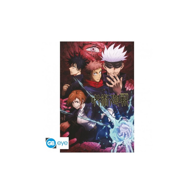 Retrouvez Itadori, Fushiguro, Kugisaki et Gojo sur ce superbe poster Jujutsu Kaisen par GB Eye !