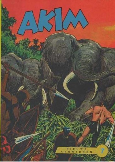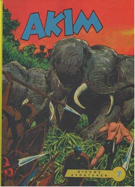 De levertermijn van de boeken van Uitgeverij Boumaar (indien we ze niet op stock hebben) is iets langer dan gewoonlijk. Gelieve hiermee rekening te houden. Alvast bedankt voor uw geduld. Bundel 7 - 1957 Hansrudi Wäscher zette in 1956 op aanzet van zijn Duitse uitgever Walter Lehning de avonturen van Akim voort, de strip die tekenaar Augusto Pedrazza en scenarist Roberto Renzi in 1950 hadden opgezet voor de Italiaanse uitgeverij Tomasina. Daarmee pleegde Wäscher op dat moment plagiaat, waarbij opgemerkt dient te worden dat beide Italianen op hun beurt óók plagiaat haddden gepleegd door het personage Tarzan uitgangspunt te laten zijn van hun lilliputheld... In een veel later stadium, waarover later meer, zou de Akim van Wäscher ook met plagiaat te maken krijgen... Of Hansrudi Wäscher in 1957 wist dat beide uitgeverijen hevig procedeerden over 'zijn' Akim waarvoor Tomasina geen auteursrechten kreeg uitbetaald (!), is ongewis. Van 's morgens vroeg tot 's avonds laat werkte hij aan zijn comics, vaak meerdere tegelijk. Elke week moest er een nieuw deeltje verschijnen. De lezers in Duitsland en waarschijnlijk ook die in Italië zullen ten tijde van deze Akim-publicaties hoogstwaarschijnlijk niet geweten hebben dat er op dat ogenblik 'twee Akims' actief waren: die van Wäscher in de Bondrepubliek, en die van Pedrazza in Italië... Akim 51-75 Akim probeert Rita te bevrijden uit handen van de bewoners van het Zwarte Moeras. Vervolgens wordt hij gedwongen het tegen bokslegende Texas-Tiger op te nemen. Na dit avontuur krijgt hij de opdracht een in de jungle verdwenen vliegtuig op te sporen. Tijdens zijn speurtocht stuit hij op de verblijfplaats van generaal Samura, die werkt aan een atomisch vernietigingswapen... zwart/wit