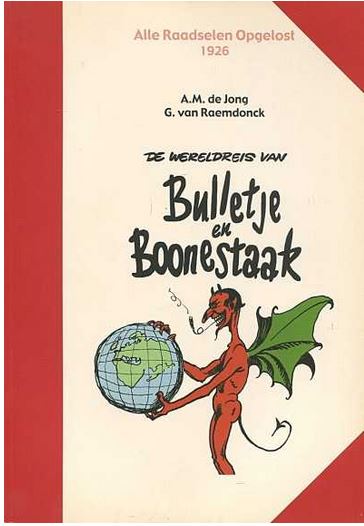 De levertermijn van de boeken van Uitgeverij Boumaar (indien we ze niet op stock hebben) is iets langer dan gewoonlijk. Gelieve hiermee rekening te houden. Alvast bedankt voor uw geduld. Bulletje en Boonestaak begonnen hun carriëre in 1922 en die duurde tot 1937. 44 Avonturen werden in de socialistische krant voorgepubliceerd en 19 verhalen kwamen in vijf verschillende periodes uit in boekvorm: in oblonbundelingen in de twintiger jaren, op pocketformaat in de jaren dertig (kleine gebonden harde kaften – pocket werd pas na de oorlog als benaming ingevoerd), weer oblong in de jaren vijftig en daarna op comic-formaat met een geheel nieuwe lay-out in de jaren zestig en zeventig. Met deze Boumaar-reeks is begonnen, daar waar andere uitgevers ophielden: bij verhaal 20 en afgemaakt tot de laatste strook. De complete uitgavenreeks is na 14 jaar werken nu beschikbaar. De Jong en Van Raemsdonck waren vrienden zoals Bulletje en Boonestaak waren in hun avonturen. Waarschijnlijk kun je De Jong vergelijken met Bulletje: een lawaaipapagaai die barstte van de energie en ideeën, streken uithaalde en verhalen kon vertellen als geen ander. ‘t Leverde de beste en meest humoristische verhalen op tot Franquin die met Guus Flater evenaarde. In alle 44 delen worden stukjes uit die periode, anecdotes van beide heren en tijd waarin zij leefden, besproken. Nu, na 95 jaar nog altijd een ‘must’ om te lezen. Opmerking c.q. waarschuwing: de strip bevat blote billen, grof taalgebruik en duidelijke stellingnames tegen ieder geweld, dat door De Jong en Van Raemdonck duidelijk en afschrikwekkend in beeld is gebracht. zwart/wit