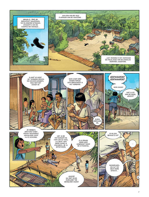 Brazilië, 1949. Na een zware kanotocht langs een zijtak van de Amazonerivier, bereikt een fotograaf een Engels ziekenhuis. Voor hij sterft, vertrouwt hij de dominee van het ziekenhuis een aantal bizarre foto’s toe. De dominee brengt ze naar het Engelse consulaat in Manaus, de hoofdstad van Amazonia. Op een van de foto’s staat een wezen dat niets menselijks heeft... Meer is er niet nodig om MI6 en hun speciale agente, Kathy Austin, te alarmeren! De Britse inlichtingendienst MI6 speurt naar buitenaards leven in het Amazonegebied. Amazonia is het vervolg op de succesvolle cycli Kenya en Namibia. Ultraspannende sciencefiction van grootmeester Leo in samenwerking met Marchal en Rodolphe.