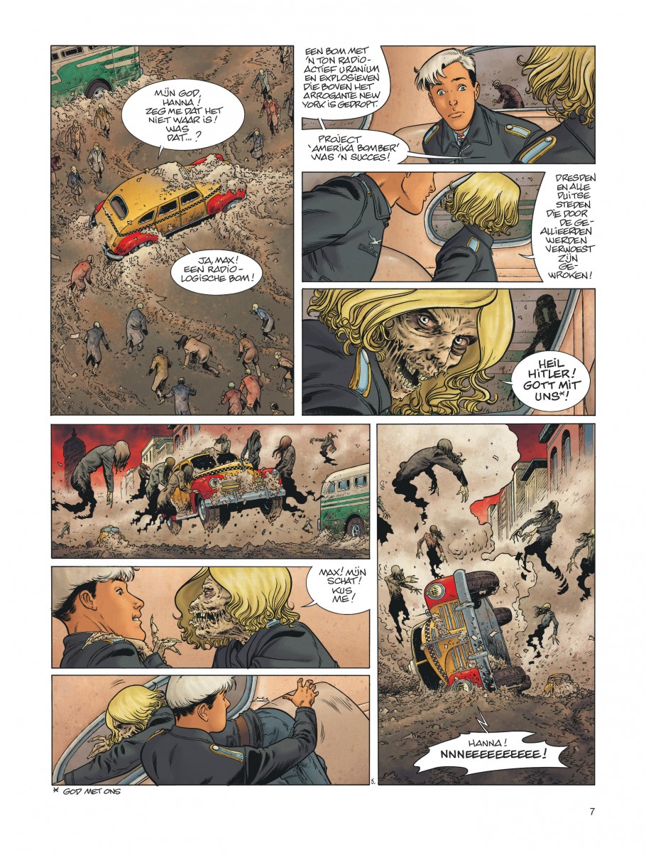 Begin mei 1945. Een revolutionair toestel, de vliegende vleugel, laat boven New York een bom los die geladen is met een ton uranium. De stad wordt totaal verwoest, overal ontstaat brand en er vallen honderdduizenden slachtoffers. Oberleutnant Werner Zweiköpfiger, een Amerikaanse spion die is geïnfiltreerd in de Duitse luchtmacht, wordt gelukkig weer wakker. Het was maar een nachtmerrie. Alleen is die nachtmerrie ook de droom van Hitler en Fugkapitän Hanna Reitsch, de jeugdvriendin van Werner. Hanna kreeg van Hitler de opdracht om New York te bombarderen en zo de eer te redden van het Derde Rijk. De geallieerden zijn ervan overtuigd dat de oorlog voorbij is. Hun enige bekommernis is nu zoveel mogelijk Duitse geleerden op te pakken voor die in Russische handen vallen. En hun absolute prioriteit gaat uit naar Wernher von Braun, de uitvinder van de V1- en V2-bommen. Maar Hanna is vastbesloten de opdracht van de Führer tot een goed einde te brengen. Een strip die past in twee genres: Berentand is een historische vliegtuigstrip én een spannende avonturenreeks. Een pakkend verhaal over vriendschap tijdens de Tweede Wereldoorlog. Dit oorlogsverhaal van Yann en Henriet is een zeer gewaardeerde oorlogssaga. Het eerste deel van cyclus twee.