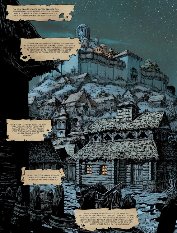 Kergan zwerft al achthonderd jaar door de steppen en wouden van Centraal-Europa. Eeuwen van nachtelijke jachtpartijen, samen met zijn opwekster Arkanea, hebben hem de kracht en ervaring opgeleverd van een oude vampier ... In 1013 houden de twee halt in Kiev waar de heer Vladimir de plak zwaait. De stad vormt het decor waarin Kergan besluit om voortaan zijn eigen instinct te volgen en zich te bevrijden van Arkanea. Nu is het aan hem om zijn tanden in de loop van de geschiedenis te zetten ... Tweede deel van de nieuwe cyclus die teruggaat naar de begindagen van de Prins van de Nacht en de oorsprong van het kwaad. Yves Swolfs krijgt de hulp van toptekenaar Thimothée Montaigne (Het Derde Testament - Julius).