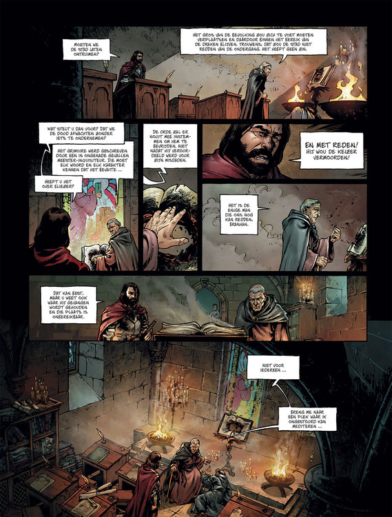Sinds de oprichting staat de stad Anderion onder de bescherming van de priesters van de Rode Draak. Bij de volle maan reciteren ze de heilige verzen van hun oude grimoire en voorkomen ze het ontwaken van de draken. Wanneer ze dood worden gevonden en hun grimoire vernietigd, zoekt Noriav van de Orde van de wijzen de hulp van Aronn, een jonge meesterinquisiteur. Dankzij zijn macht kan Aronn Eliezer de dwaas uit zijn Gottland-gevangenis halen en hem terugbrengen naar Anderion. Eliezer, die ooit het Grimoire schreef, is de enige die de stad kan redden van de woede van de draken. Maar de huurmoordenaars zijn nog steeds op de loer ... Moordenaars vormen een dodelijke bedreiging voor een stad Ardaigne. Is slechts één meesterinquisiteur genoeg om hen te stoppen? vijfde deel binnen deze fantasy-conceptserie. Voorlaatste deel van de eerste cyclus!