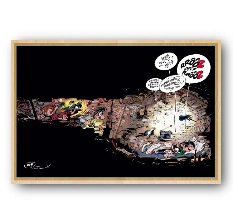 Dessin d'André Franquin, une peinture de qualité FINE ART sur une toile en polycoton premium de 350 g/m2, montée sur un châssis en bois et équipée d'un crochet de suspension.