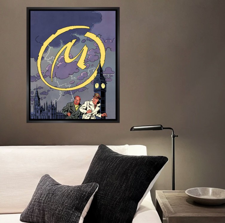 Œuvre d'Edgar P. Jacobs, ( 1956 ), une peinture d'ART en toile de polycoton Premium de 350 g/m² de qualité supérieure, montée sur un cadre en bois et équipée d'un crochet de suspension.